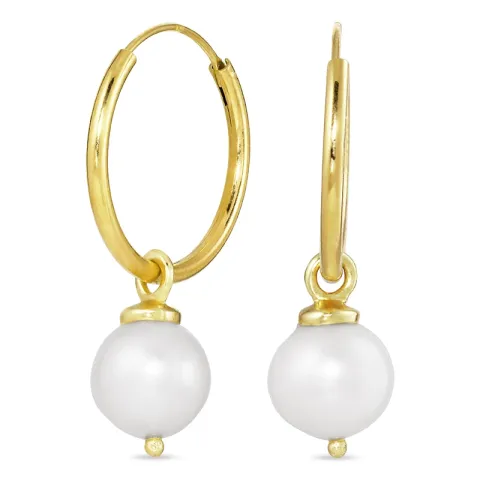 18 mm pärla creol i förgyllt silver med blank yta 2 vita pärlor.
