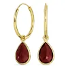 18 mm röd kristal creol i förgyllt silver med blank yta och 2 slät röda kristaller.