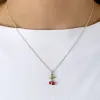 körsbär hängen i silver med blank yta og slät röd emalj og slät grön emalj.