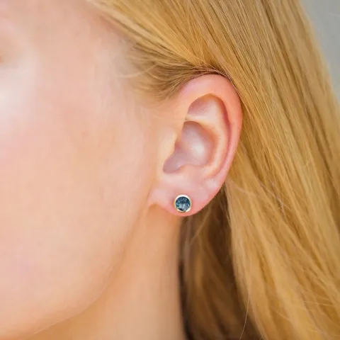 6,5 mm mörkblå kristal örhängestift i förgyllt silver - Loom Stones