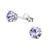 5 mm örhängen i silver med blank yta och 2 facettslipade lila kristaller.