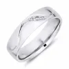 vigselsring i 9 karat vitguld med 2 briljantslipade diamanter i Wesselton/SI på ialt 0,008 ct och 1 briljantslipade diamanter i Wesselton/SI på ialt 0,02 ct.