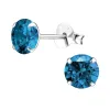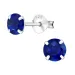 6 mm runda blå örhängestift i silver med blank yta och 2 facettslipade mörkblåa zirkoner.