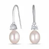 7,5-8 mm pärla örhängen i silver med blank yta och facettslipad vit zirkon 2 vita sötvattenspärlor.