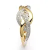 abstrakt ring i 9 karat guld med 9 karat vitguld med blank yta och 2 facettslipade vita zirkoner.