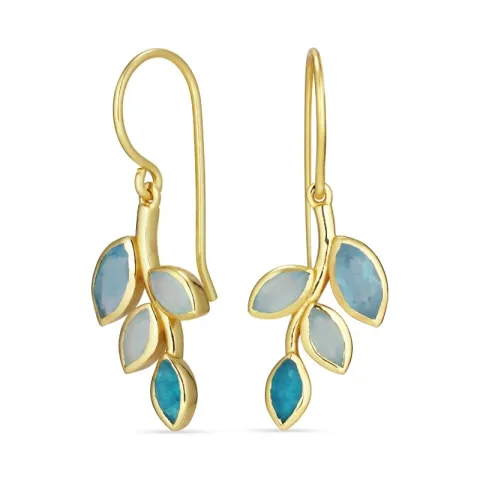 blad blå örhängen i förgyllt silver med blank yta och 2 slät blå syntetiska onyxer och 1 slät blå jadestenar och 1 slät ljusblåa ljusblåa akvamariner.