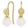 blommor månsten öronkrokar i förgyllt silver med blank yta och 2 slät vita månstenar.