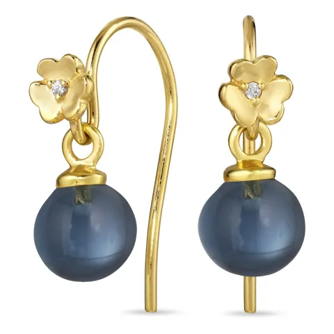 blommor mörkblå kristal öronkrokar i förgyllt silver med blank yta och 2 slät mörkblåa kristaller och 2 facettslipade vita zirkoner.