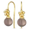Blommor rökfärgad kvarts öronkrokar i förgyllt silver