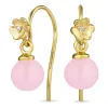 blommor rosa krystal öronkrokar i förgyllt silver med blank yta och 2 slät rosa rosa kristaller och 2 facettslipade vita zirkoner.