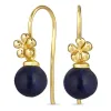 Blommor syntetisk blå safir öronkrokar i förgyllt silver