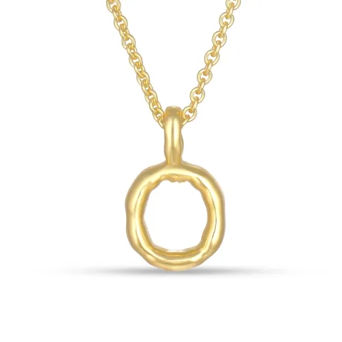 bokstav o hängen med halskedja i förgyllt silver med blank yta.