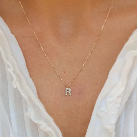 Bokstav r zirkon halskedja med berlocker i 8 karat guld - My Letter