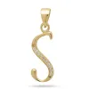 bokstav s zirkon hängen i förgyllt silver med blank yta og facettslipad vit zirkon.
