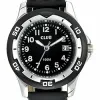 barnklocka från Club time modell A65168S5A med urtavla av sort, självlysande siffror och visare och datum.