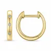 13 mm diamant creol i 14 karat guld med blank yta och 6 briljantslipade vit diamanter Wesselton/SI på ialt 0,05 ct.