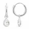 14 mm droppe vita zirkon creol i silver med blank yta och 2 facettslipade vita zirkoner.
