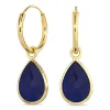 droppe jadesten creol i förgyllt silver med blank yta och 2 slät blå jadestenar.