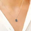 droppe mörkblå kristal hängen i silver med blank yta og 1 slät mörkblåa kristaller.