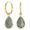 droppe mörkgrön kristall creol i förgyllt silver med blank yta och 2 slät mörkgröna mörkgrön kristaller.