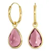 Droppe rosa kristal creol i förgyllt silver