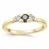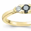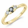 elegant sort diamant briljantring i 14 karat guld med blank yta och 1 briljantslipade svarta diamanter i Wesselton/SI och 2 briljantslipade diamanter i Wesselton/SI