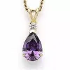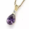 elegant droppe guld hängen i 14 karat guld med blank yta og 1 facettslipade lila syntetiska ametister og 1 facettslipade vita zirkoner.