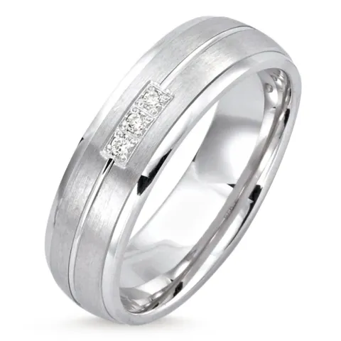 elegant ring i rhodinerat silver med blank och borstad yta och 3 facettslipade vita zirkoner.