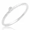 elegant strukturerad zirkon ring i silver med blank yta och 1 facettslipade vita zirkoner.