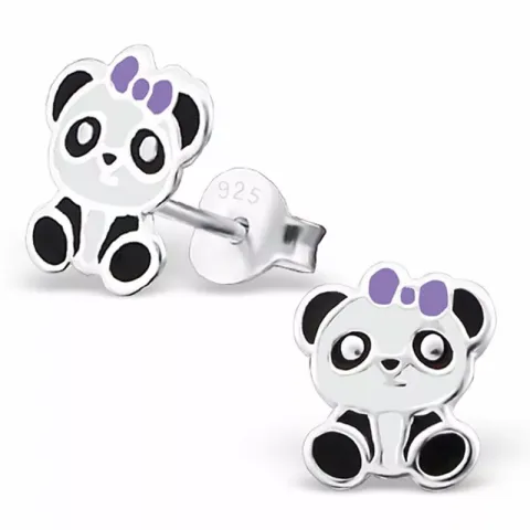 panda örhängen i silver med blank yta och briljantslipat vit emalj och briljantslipat emalj och briljantslipat lila emalj.
