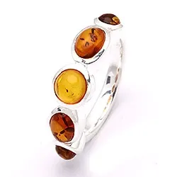 bärnsten ring i silver med blank yta och 5 slät cognac färgad bärnstenar.