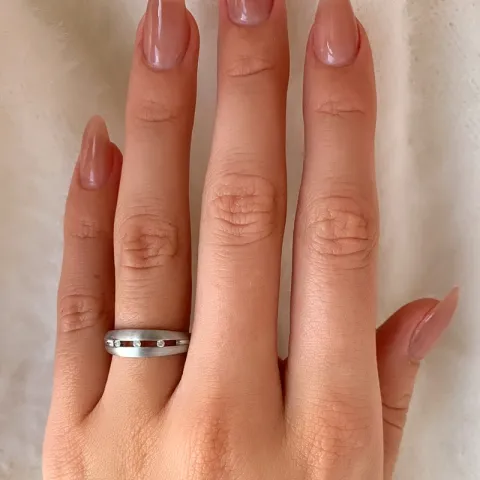 diamant ring i silver med matt yta och 3 facettslipade champangefärgade diamanter på ialt 0,045.