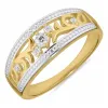 ring i förgyllt silver med blank yta och 7 facettslipade vita zirkoner.