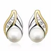 pärla örhängestift i silver med förgyllt silver med blank yta och 6 facettslipade vita zirkoner 2 vita sötvattenspärlor.