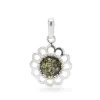 blommor hängen i silver med blank yta og 1 cabochonslipade gröna bärnstenar.