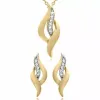 set med örhängen och halsband i förgyllt silver med och facettslipad vit zirkon.