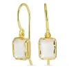 fyrkantigt månsten örhängen i förgyllt silver med blank yta och 2 slät vita syntetisk morganit.