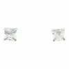 fyrkantigt 5 x 5 mm örhängestift i silver med blank yta och 2 facettslipade vita zirkoner.