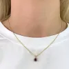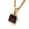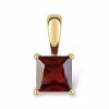 fyrkantigt hängen i 9 karat guld med blank yta og 1 facettslipade röda granater.