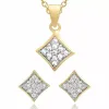fyrkantigt set med örhängen och halsband i förgyllt silver med och facettslipad vit zirkon.