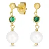 grön kristal örhängen i förgyllt silver med blank yta och 2 slät gröna kristaller 2 vita pärlor.