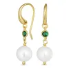 grön kristal örhängen i förgyllt silver med blank yta och 2 slät gröna kristaller 2 vita pärlor.