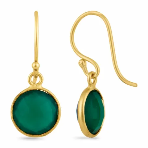 gröna onyxer örhängen i förgyllt silver med blank yta och 2 facettslipade gröna onyxer.