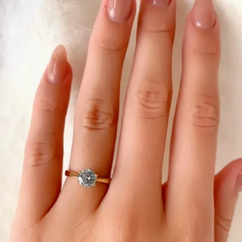 guldringar: solitärring i 9 karat guld med blank yta och 1 facettslipade vita zirkoner.