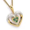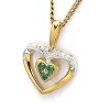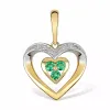 hjärta hängen i 9 karat guld med rhodium med blank yta og 2 facettslipade vita zirkoner og 3 facettslipade gröna syntetisk smaragd.