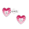hjärta barnörhängen i silver med blank yta och 2 slät vita kristaller och slät rosa emalj och slät rosa emalj.