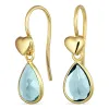 Hjärta droppe blå kristal öronkrokar i förgyllt silver