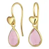 hjärta droppe rosa krystal öronkrokar i förgyllt silver med blank yta och 2 slät rosa rosa kristaller.
