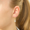 hjärta örhängen i förgylld mässing med blank yta och 4 facettslipade vita zirkoner.