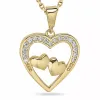 Hjärta zirkon halsband i förgyllt silver med hängen i 9 karat guld - Gold Collection
